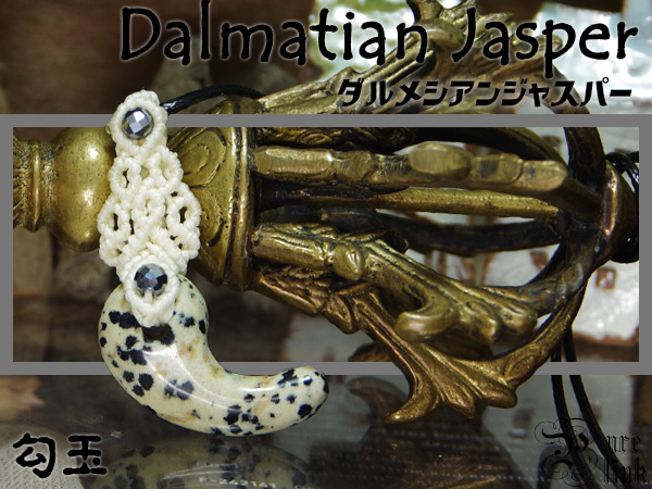 クロブチ模様の可愛い魔石『ダルメシアンジャスパー』勾玉マクラメ編みトップネックレス