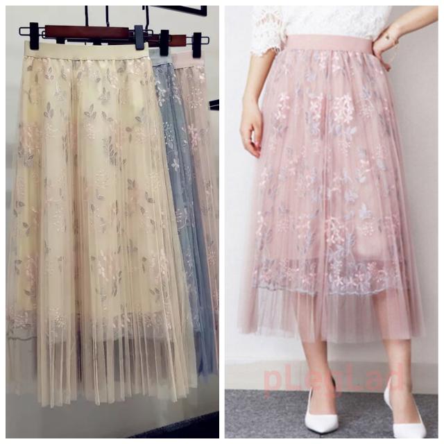 チュール スカート レディース レイヤード レース プリーツ シフォン ロング 花柄 刺繍 大人 ガーリー かわいい ウエストゴム マキシ丈 ミモレ丈 大きめ ゆったり 夏 秋 きれいめ マキシスカート ハイウエスト 送料無料 フェミニン