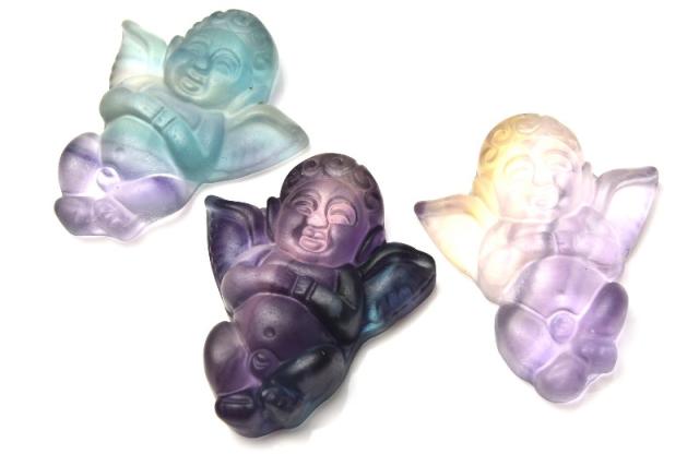 天使 エンジェル フローライト 31x25mm 彫刻品 穴あき マットタイプ 金運・仕事運_PR2985