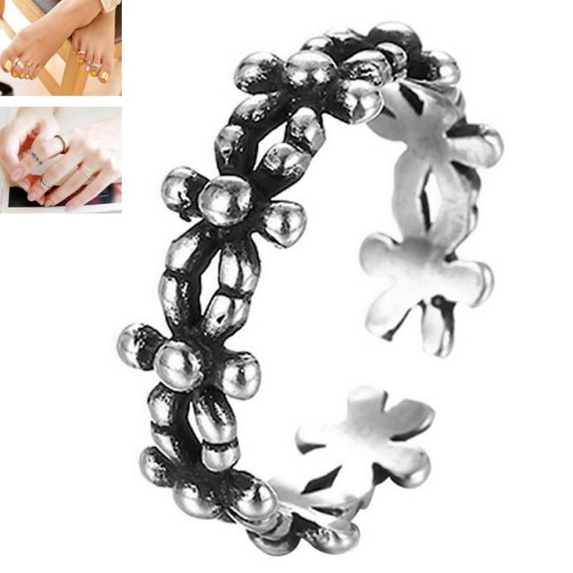 花をデザインした指輪のサイズ調整ができるフリーサイズのトゥリング。