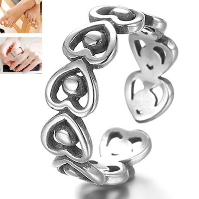 幾つものハートが並ぶ可愛い指輪のサイズ調整ができるフリーサイズのトゥリング。