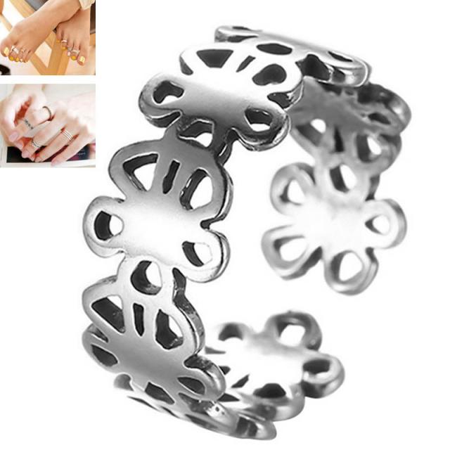 幸せの四つ葉のクローバーをデザインした指輪のサイズ調整ができるフリーサイズのトゥリング。