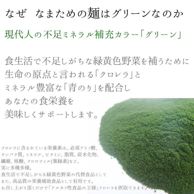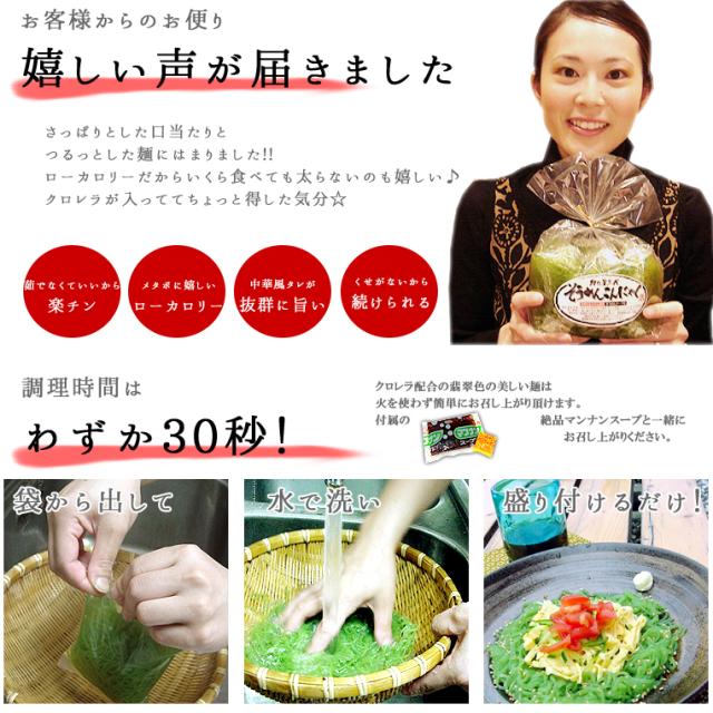 ■原材料 【麺】 こんにゃく粉(国産),青さのり粉末,クロレラ/水酸化カルシウム