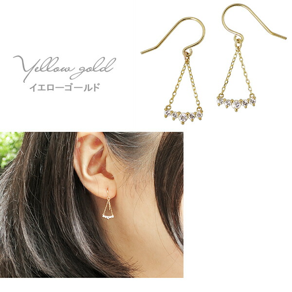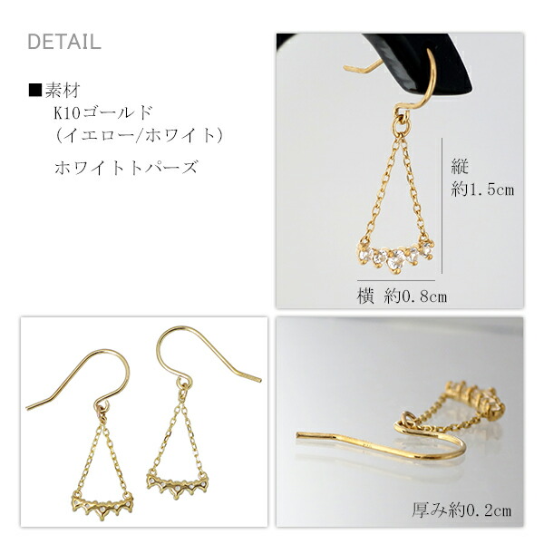 ホワイトトパーズ ホワイトゴールド イエローゴールド K10 10金 10k しずく 雫 三角 ドライアングル フックピアス 揺れるタイプ プレゼント フェミニン 上品 華やか 豪華 華奢 繊細 FPRPD-20254 OPRPD-20255