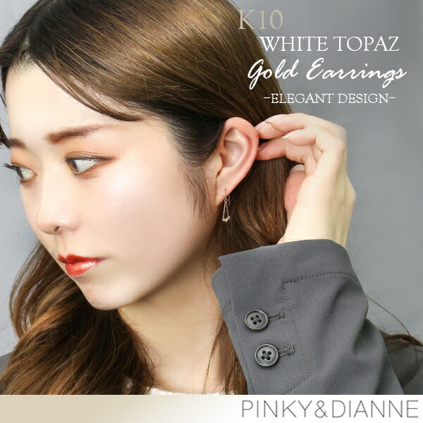 ピンキー&ダイアン ホワイトトパーズ ジュエル ゴールドピアス K10 ゴールド チェーン フックピアス 揺れる スイング ピアス 10金 トパーズ 天然石