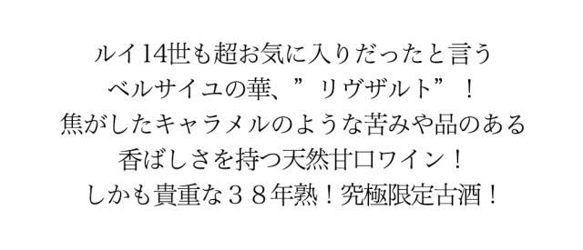 ![]() 甘口タイプのワインと言えば、やはり「ソーテルヌ」が一番の知名度を誇っているのが現状でしょう。しかしこちらのソーテルヌ、そうそう気軽に手が出せるお値段ではないのが辛いところ・・・。そこで今回ご紹介するこの「リヴザルト」です! リヴザルトには赤・白両方のタイプがありますが、今回のリヴザルトは赤ワインタイプ。 葡萄果汁の発酵中にアルコールを添加して発酵を止めることにより、果実そのものが持つ甘みが残るので、嫌味がなく、ほどよいアルコールのボリューム感が感じられます。 口に含むと、ソーテルヌに勝るとも劣らないまろやかな甘味と力強さに圧倒されますが、もちろんただ甘いだけでなく、焦がしたキャラメルのような苦味や品のある香ばしさを持ち合わせているので、大人の奥行きを持ったデザートワインとして楽しめる逸品に仕上がっています。 ソーテルヌなどに比べても、価格がぐっと抑え目なのが嬉しい限り。それでいて複雑で豊かな味わいを十分に楽しめ、さらに長期熟成もこなすという、まさに甘口ワインのダークホース的逸品なのです! 造り手は、ラングドック・ルーション本拠地のリヴェイラック社!!彼らにより大切に保管されてきた非常に希少な秘蔵古酒! |