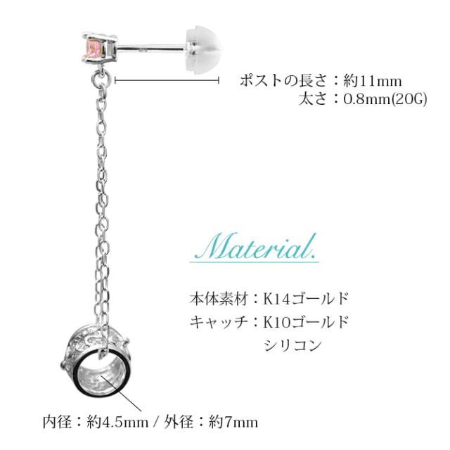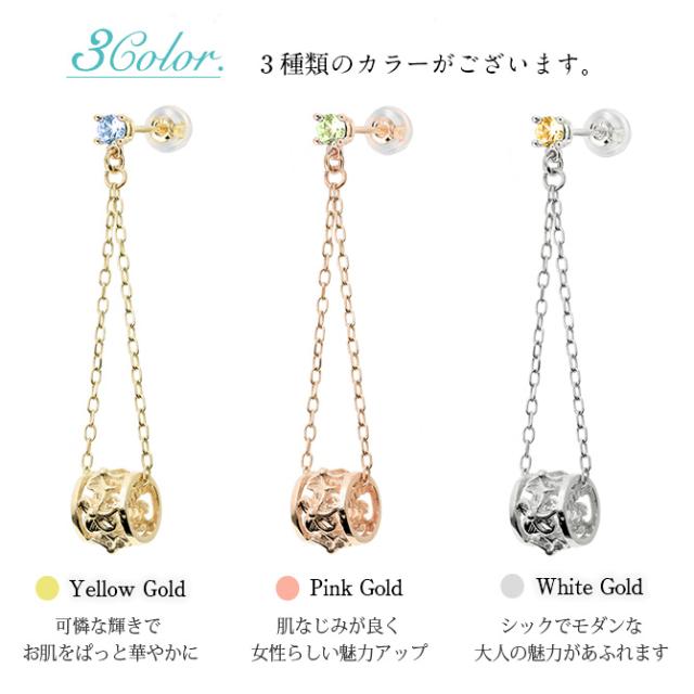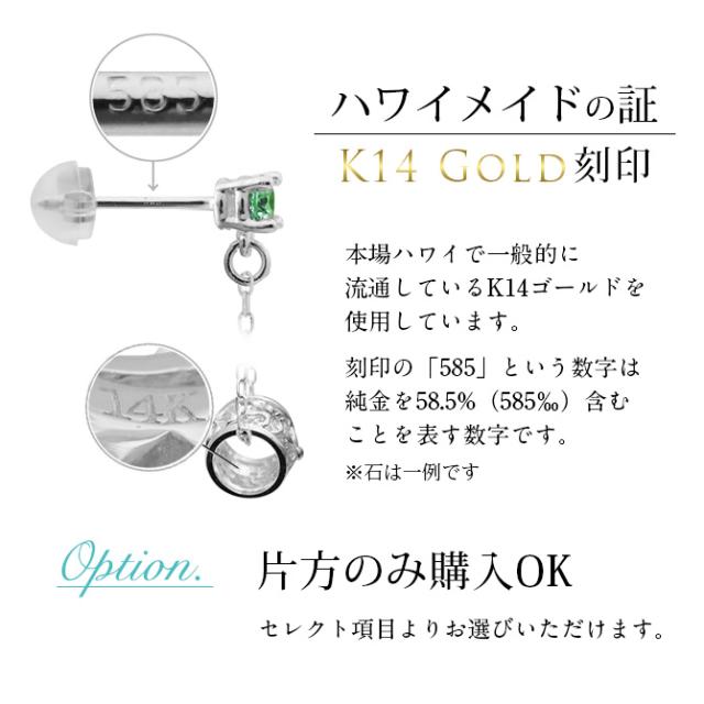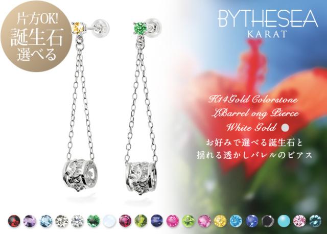 ハワイアンジュエリー ゴールド ピアス ホワイトゴールド ピアス 透かしバレル チェーン カラーストーン 誕生石 選べる プルメリア ハイビスカス 片耳 1個 購入可 K14 シリコンキャッチ 20G ゲージ BY THE SEA バイザシー プレゼント バレンタイン 【品番:GE302W】