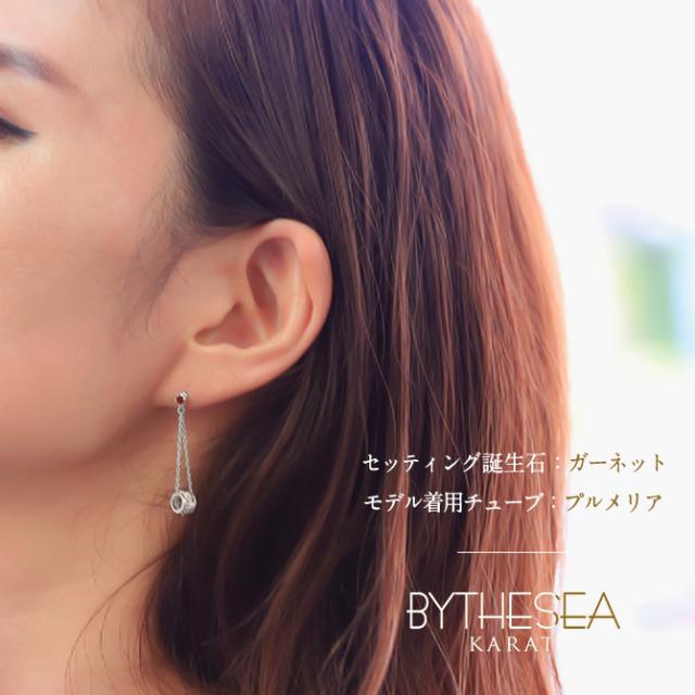 ヘッド部分の誕生石はお好みのものを、チャーム部分はプルメリアかハイビスカスで選択できます