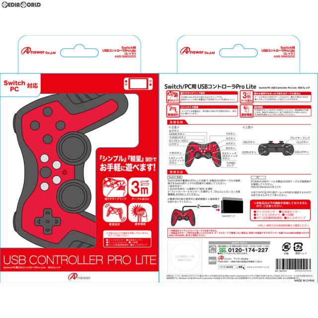 ■タイトル:Switch用(スイッチ用) USBコントローラPro Lite(レッド) アンサー(ANS-SW052RD)