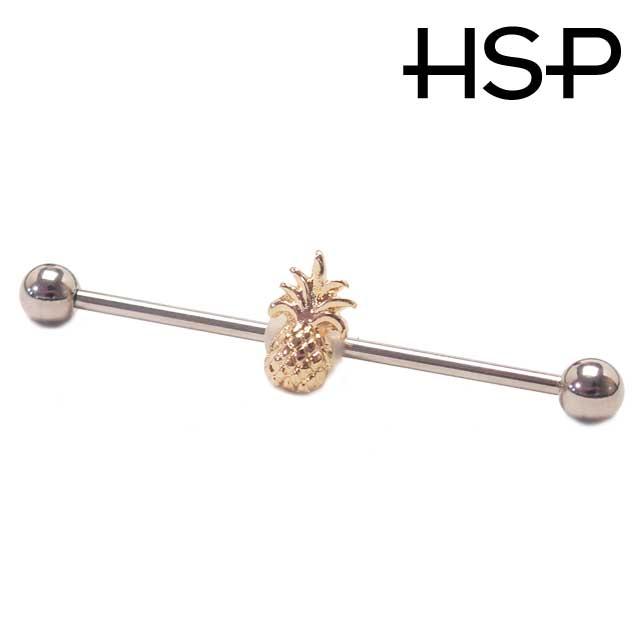 ボディピアス パイナップル インダストリアルストレートバーベル 14G 軟骨ピアス 耳ピアス