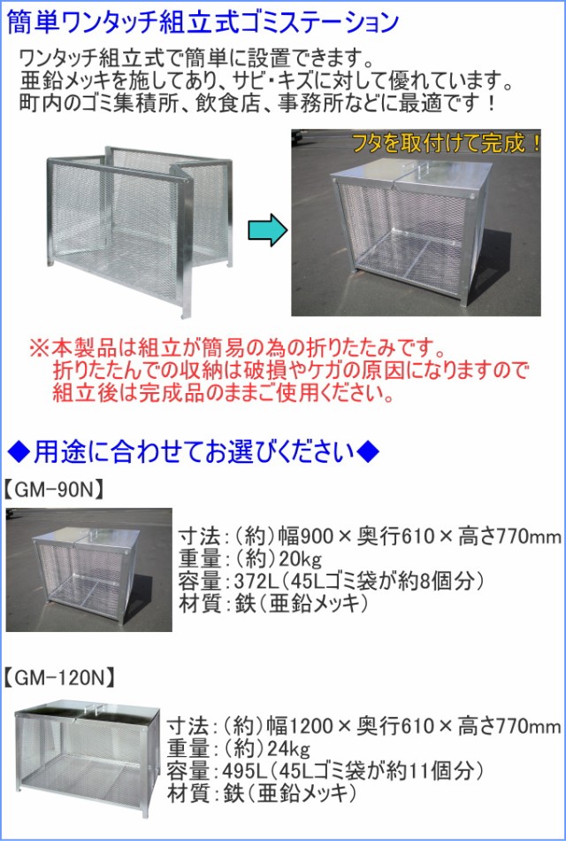 ゴミステーション 372L 亜鉛メッキ仕上げ (GM-90N) 送料無料 組立品 簡単組立 屋外用 整理 整頓 衛生 スッキリ