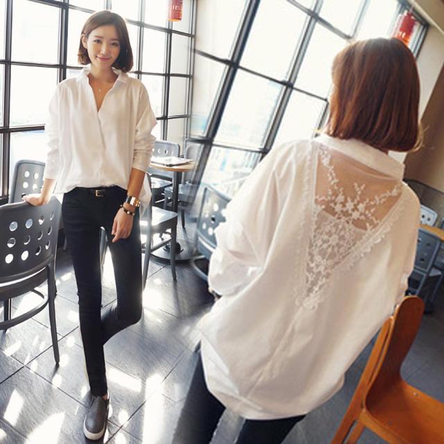 LAZA シャツ ブラウス レディース シースルー レース ロング丈 ブラウス 白 ゆったり