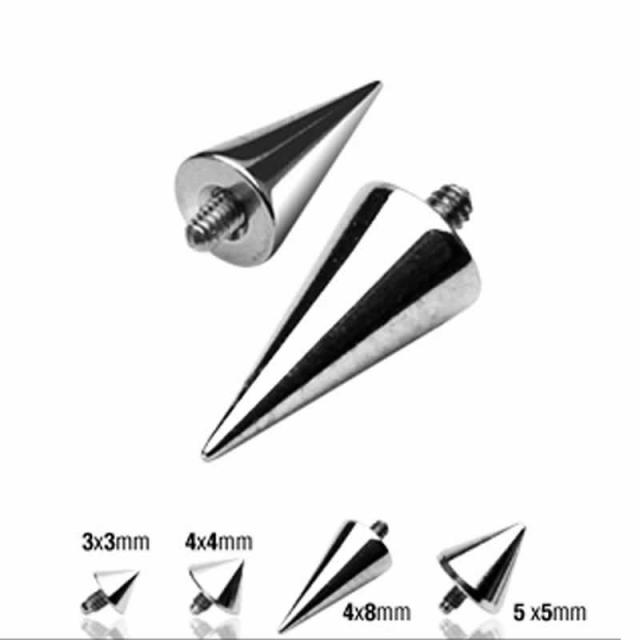 円すい型の長いスパイクや短いコーンをデザインしたした内ネジタイプのボディピアス用キャッチ。パンクロックなロングスパイクが存在感を発揮。