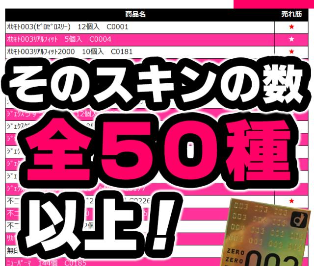 | 商品内容 | <選択コンドーム(全11種)> ● オカモト うすさ均一0.02EX(6個入) |