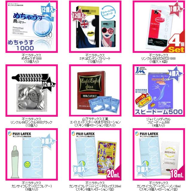 | 商品説明 | ● お財布に負担がない、めちゃくちゃお得商品! ● 夜の楽しい生活はこのセットだけで十分! ● 大手人気コンドームが合計2箱! |