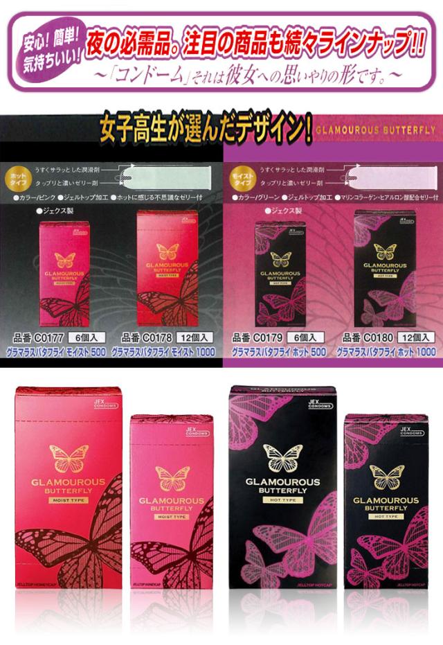 ジェクスからティーンのためのコンドーム誕生!!「ぬくもりあふれる 快感」 初めてでも安心。HOTに感じる不思議なゼリー付き。流行に敏感で、正義感に強いメンバーを集め、ティーンウケする傾向を細かくリサーチ。ティーンの生の声をカタチにしました。デザインの選定には100名の女子高生にモニター調査をおこない、厳選。そして、誕生したのが「GLAMOUROS BUTTERFLY」です。