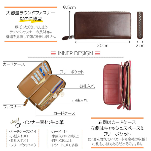 お札入れ×1 小銭入れ×1 カードポケット×14 フリーポケット×3