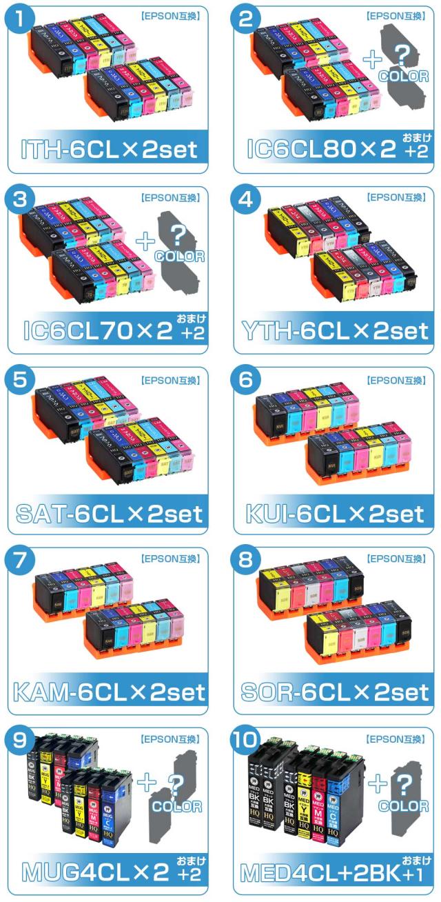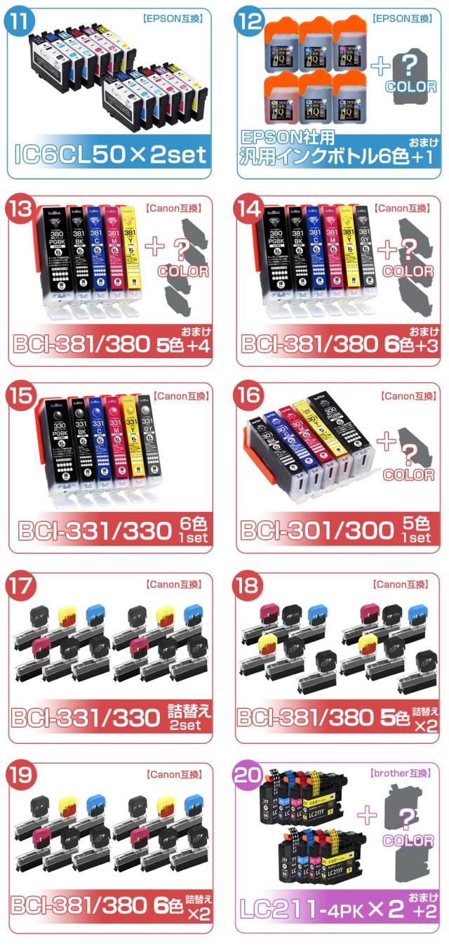 ▼▼▼中身が選べるインク福袋の選べる型番一覧▼▼▼