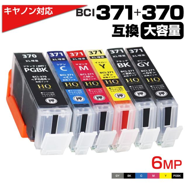 BCI-371XL + 370XL /6MP 互換インクカートリッジ 6色 プリンター キャノン canon 370 PGBK 顔料 371 ブラック シアン マゼンタ イエロー グレー 371C 371M 371Y 371GY TS9030 TS8030 MG7730 MG7730F MG6930