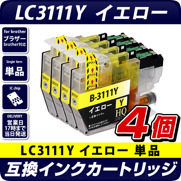LC3111Y イエロー×4個パック【ブラザープリンター対応】対応 互換インクカートリッジ 3111Y イエロー×4個セット brother