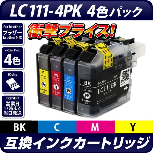 LC111-4PK [ブラザー/brother] LC111 互換インクカートリッジ4色パック【大容量】LC111BK LC111C LC111M LC111Y 4色セット