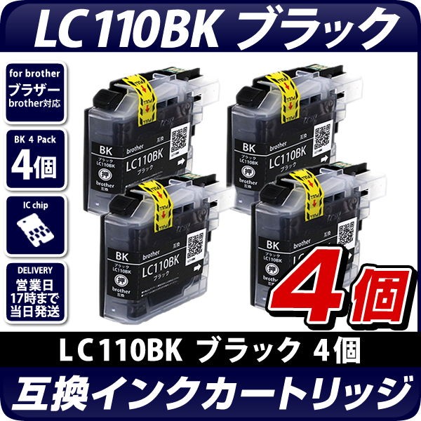 LC110BK ブラック 4個セット【ブラザープリンター対応】互換インクカートリッジ ブラック 4個パック インク残量表示OK brother