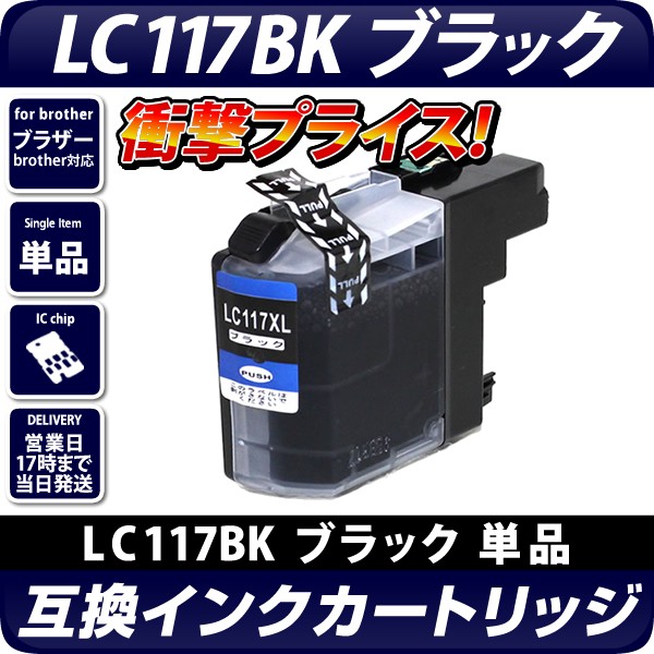 LC117BK 〔ブラザー/brother〕対応 互換インクカートリッジ ブラック ICチップ付き(LC113BK増量版)