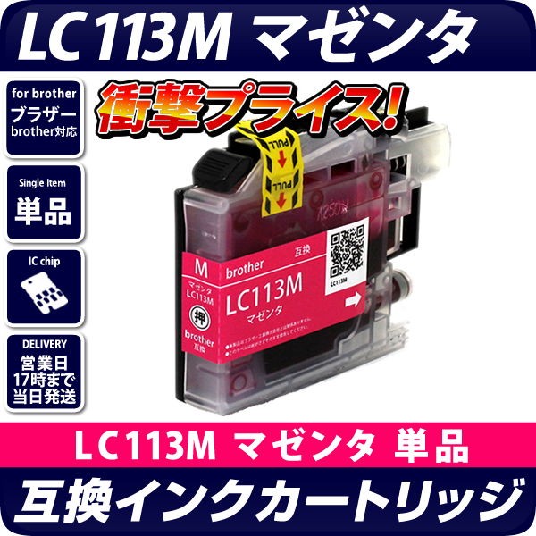 LC113M(増量版) 〔ブラザー/brother〕対応 互換インクカートリッジ マゼンタ ICチップ付き