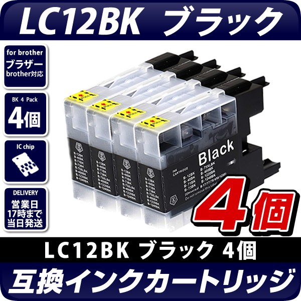 LC12BK ブラック 4個セット【ブラザープリンター対応】互換インクカートリッジ ブラック 4個パック brotherプリンター用 黒