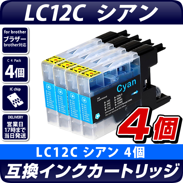 LC12C シアン 4個セット【ブラザープリンター対応】互換インクカートリッジ シアン 4個パック brotherプリンター用 青