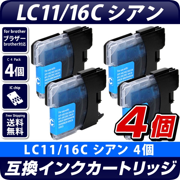 LC11/16C シアン 4個セット【ブラザープリンター対応】互換インクカートリッジ シアン 4個パック brotherプリンター用 青