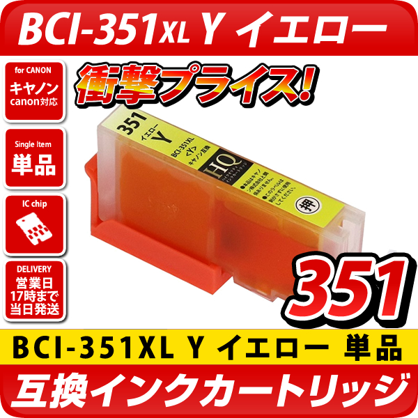 BCI-351XL Y[キヤノン/Canon]対応 互換インクカートリッジ イエロー キャノン プリンター用 BCI-351Y