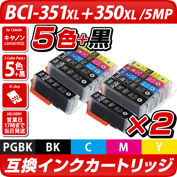 商品内容:BCI-351+350互換インクカートリッジ5色パック×1+BCI-350PGBK 1個×2セット