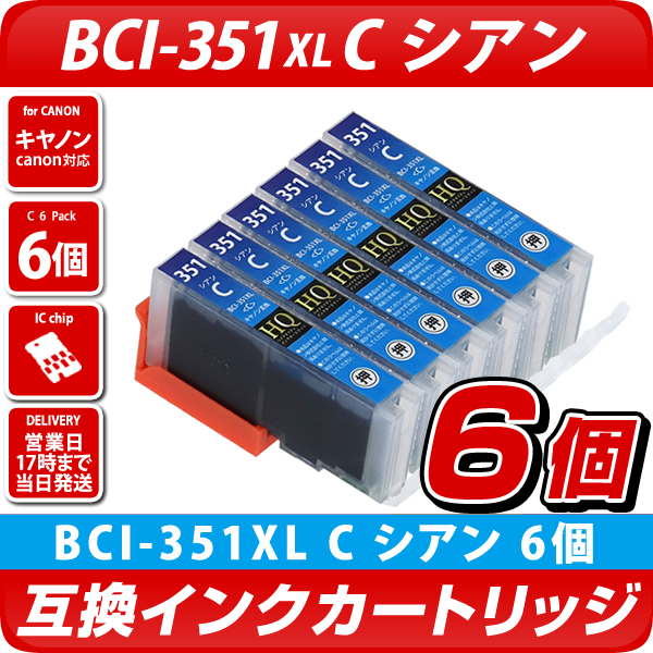 BCI-351C 互換インクカートリッジ シアン6個パック [キヤノン/Canon対応] BCI-351CXL bci-351c bci351c bci-351cxl bci351cxl