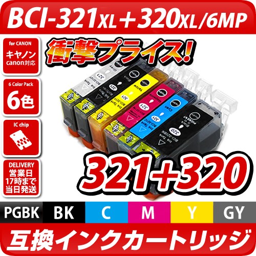 セット内容:BCI-321+320/6MP 互換インクカートリッジ6色パック×1