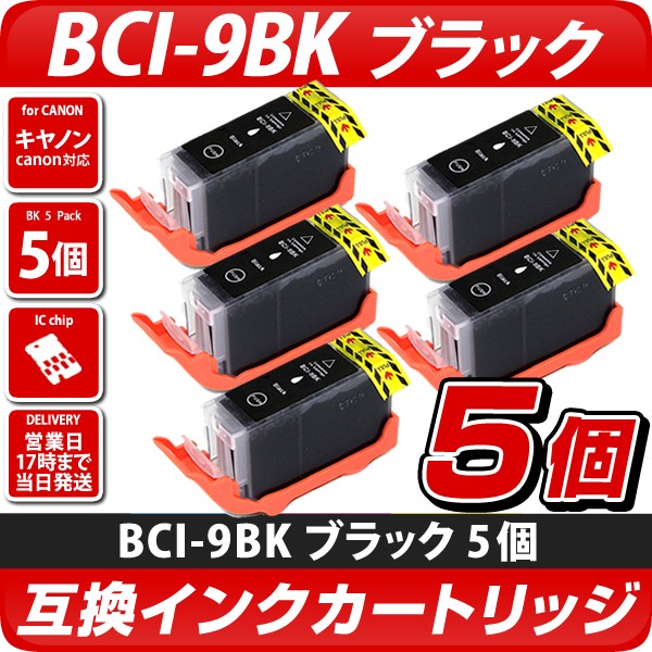 BCI-9BK ブラック(顔料) 5個パック〔キヤノン/Canon〕対応 互換インクカートリッジ ブラック(顔料) 5個セット BCI9 プリンター用 黒