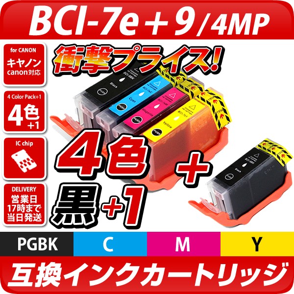 BCI-7e+9/4MP+BCI-9BKブラック1個 4色パック〔キヤノン/Canon〕対応 互換インクカートリッジ 4色セット+黒1個おまけ