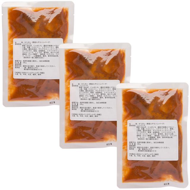 ハンバーグ 野菜入り デミグラスハンバーグ 3個 レトルト 惣菜 レンジ 湯煎 おかず 肉 洋食 お弁当 ポスト投函便
