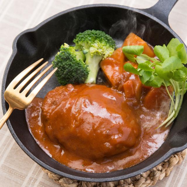 お子様から大人までみんなが大好きなハンバーグ。作るとなると手間がかかって大変な煮込みハンバーグを温めるだけで食べられる、簡単・便利なレトルトにしました。ジューシーなハンバーグとデミグラスソースの相性が抜群です。