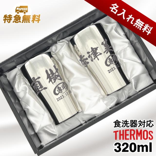 【化粧箱入り】 名入れ タンブラー サーモス ペア 名前入り プレゼント 真空断熱 保温 保冷 食洗器 対応 ステンレス 彫刻 刻印 グラス コップ おしゃれ ビールグラス 父の日 母の日 還暦祝い 退職 誕生日 男性 女性 ギフト 送料無料 320ml 光沢 JCY-320GP1SM ペアセット C51