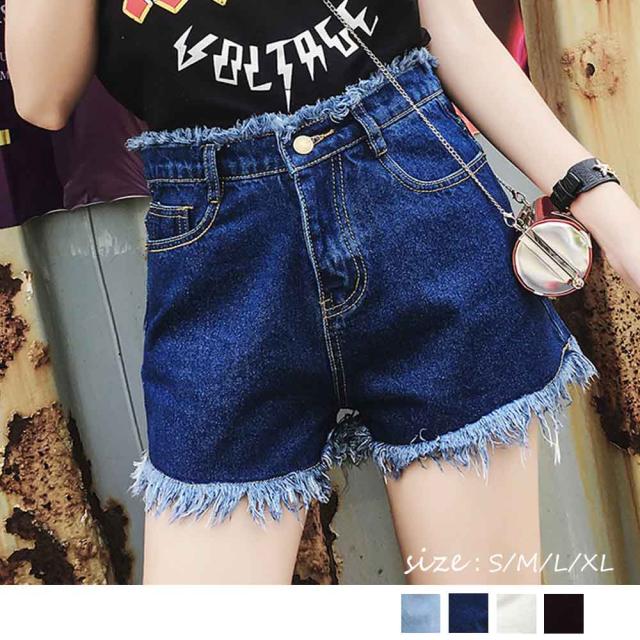 ざっくりカットオフがポイントのダメージ加工デニムショートパンツ
