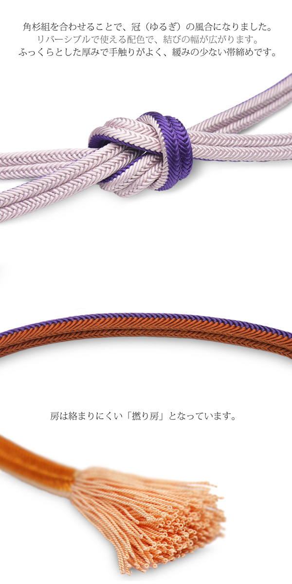 リバーシブルで2通りのオシャレを楽しめる組紐です。