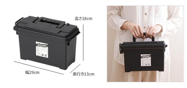 ![]() | ミリタリーテイストのマルチに使える収納ボックス 無骨なスタイルのツールボックス「MOLDING AMMO TOOL BOX」。ミリタリーなどで弾薬(AMMO)入れとして使用するBOXをプラスチック素材で再現しました。インテリアからアウトドアまでさまざまなシーンでマルチにお使いいただけます。全3サイズ展開なので用途に合わせてお選びください。 |
