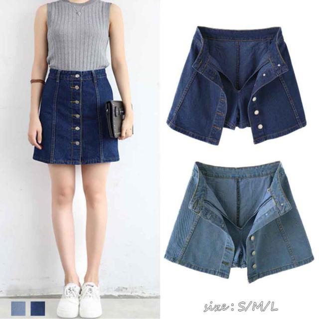 一見スカートだが実はインナーパンツ付きのデニム素材フェイクスカート