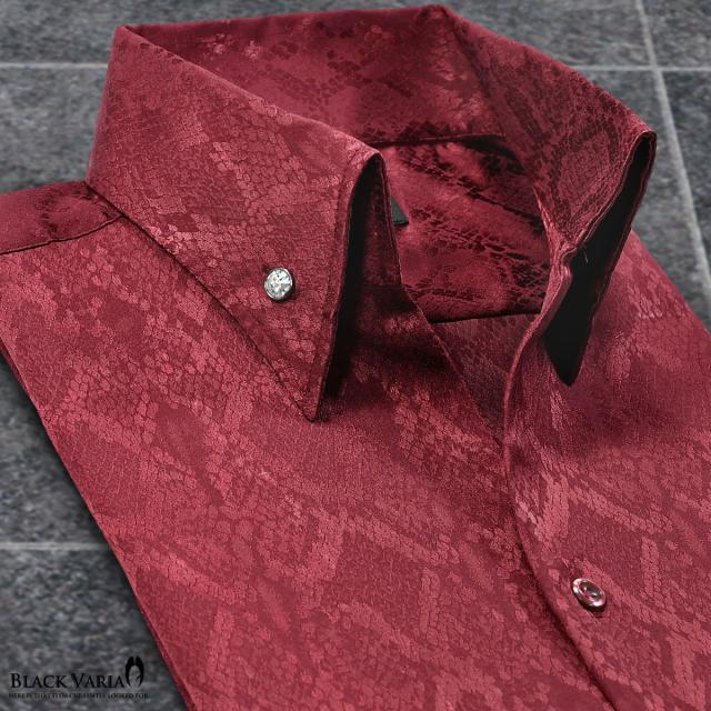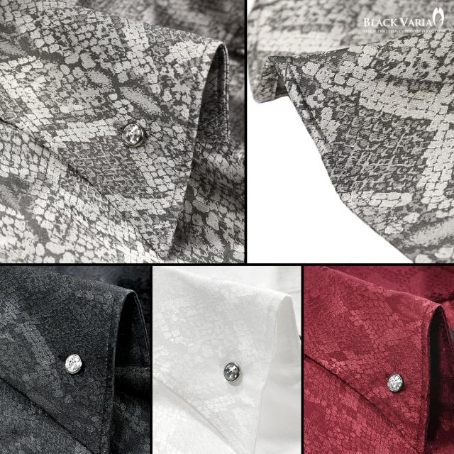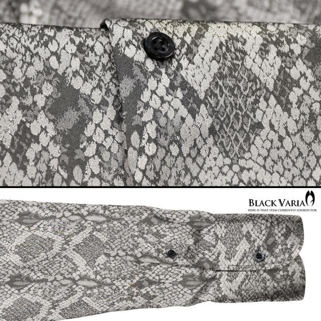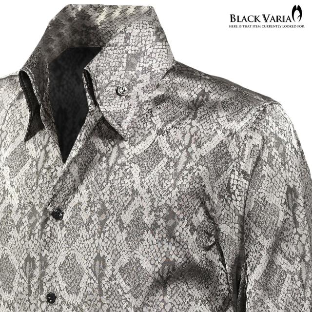 サテンシャツ ドレスシャツ スキッパー パイソン柄 蛇 日本製 ボタンダウン メンズ スリム 無地 mens(グレー灰) 191250