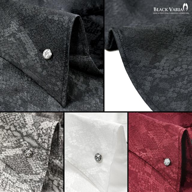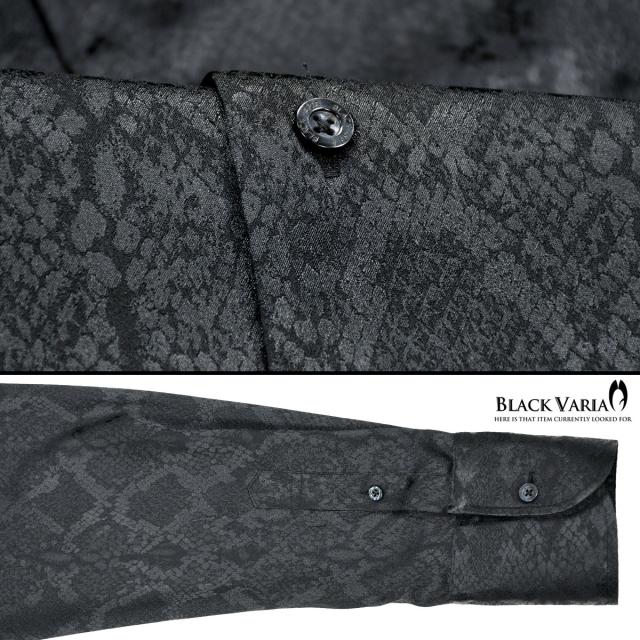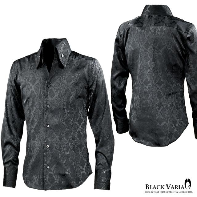 サテンシャツ ドレスシャツ スキッパー パイソン柄 蛇 日本製 ボタンダウン メンズ スリム 無地 mens(ブラック黒) 191250