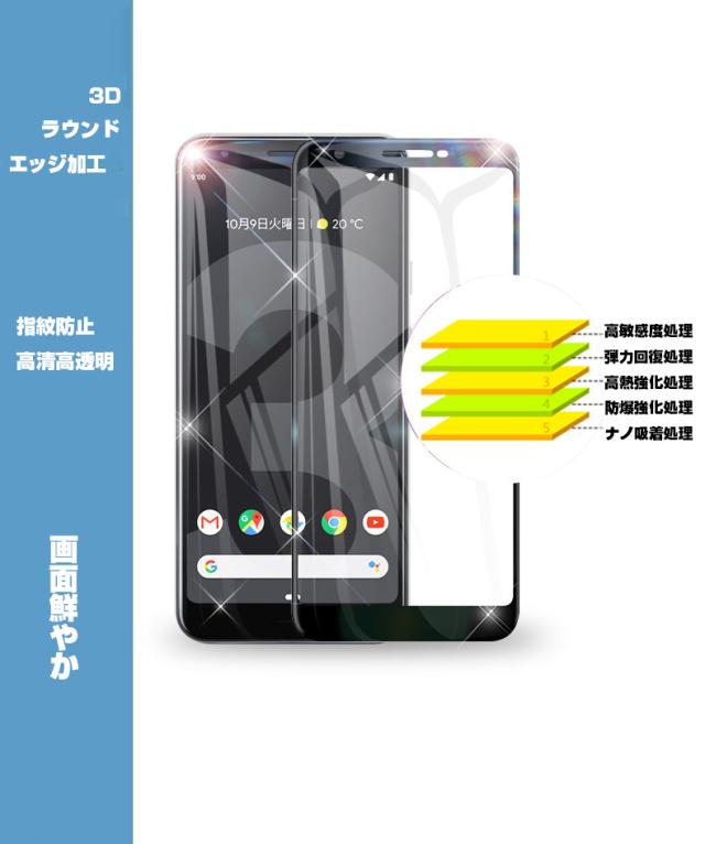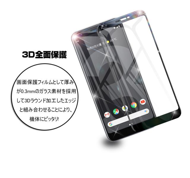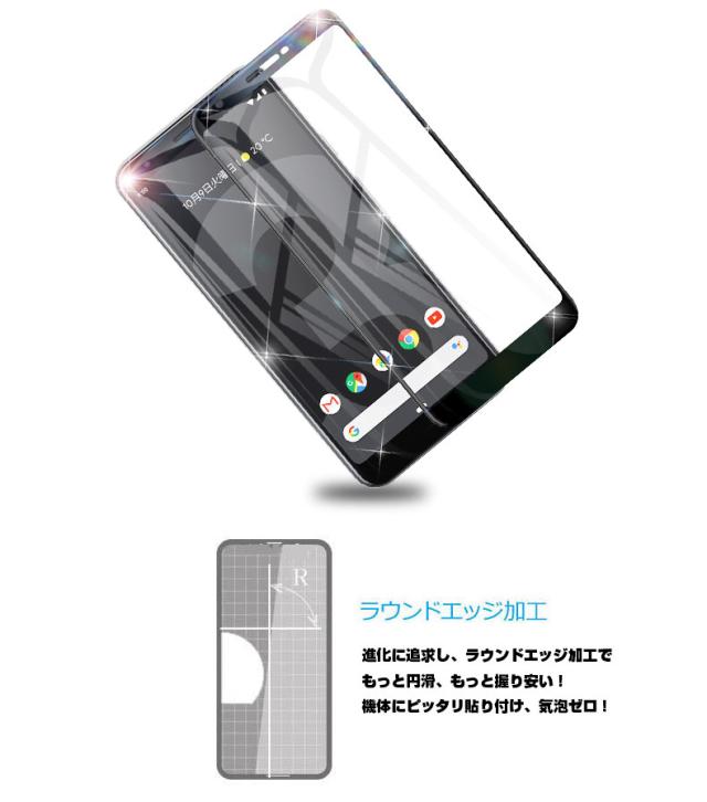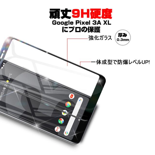 【2枚セット】Google Pixel 3A XL 強化ガラス保護フィルム 曲面 液晶保護ガラスシート グーグル ピクセル 3A XL 3D全面保護 シール