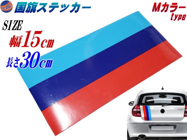 国旗ステッカー (Mカラー) 幅15cm×30cm 【メール便 送料無料】 延長可能 トリコカラー ラインテープ 長さ300mm 艶有り グロスカラー カッティング シート 赤 紺 青 3色シール フェンダーステッカー サイドデカール ストライプ ボンネット
