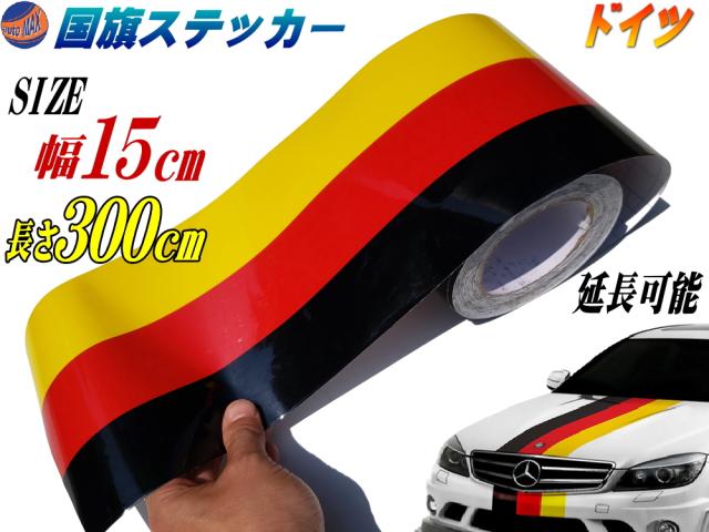 国旗ステッカー (ドイツ) 幅15cm×3メートル 【メール便 送料無料】 延長可能 トリコカラー ラインテープ 長さ3m 艶有り グロスカラー カッティング可能シート 黒 赤 黄 3色シール 300cm フェンダーステッカー サイドデカール ストライプ ボンネット