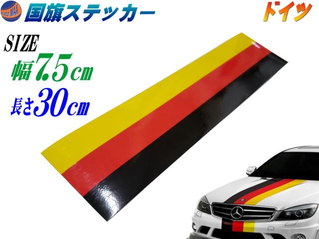 国旗ステッカー (ドイツ) 幅7.5cm×30cm 【メール便 送料無料】 延長可能 トリコカラー ラインテープ 長さ300mm 艶有り グロスカラー カッティング可能シート 黒 赤 黄 3色シール フェンダーステッカー サイドデカール ストライプ ボンネット